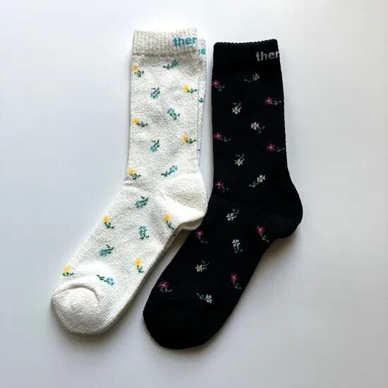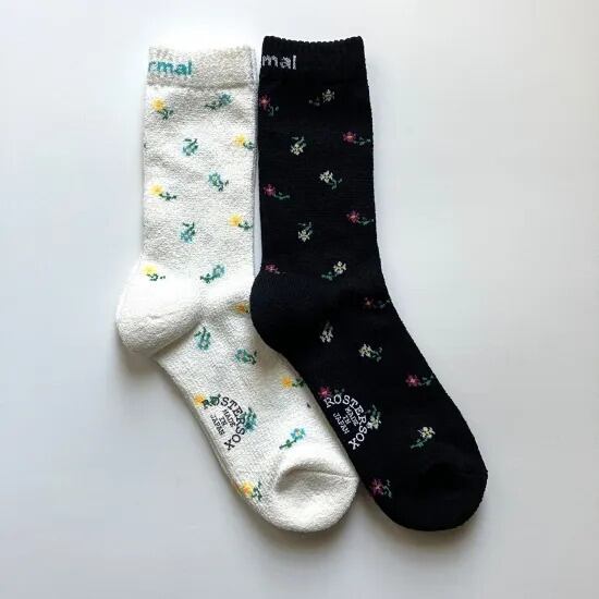 古着屋さんで昔から定番的にみかける花柄のサーマルシャツをモチーフにしたソックス。忠実に再現された花柄はもちろん、履き口に織り込んだthermalロゴも見逃せません。底がパイルになっており履き心地も最高!日本国内で丁寧に生産されています。